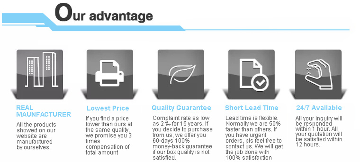 Oczekujemy, że nasze opakowania będą dla nas satysfakcjonujące! Satysfakcja i uznanie klienta to dla nas najlepsza ocena. Kierując się uczciwością, profesjonalizmem i dbałością o jakość, dążymy do tego, aby dostarczać naszym zagranicznym klientom jak najwięcej wysokiej jakości, wyprodukowanych w Chinach opakowań, maksymalizując wartość ich produktów.
