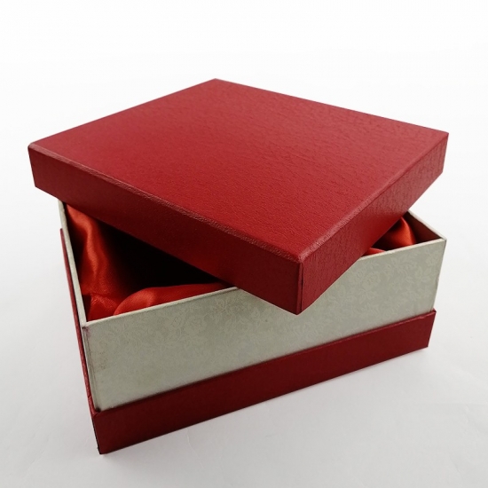 Niestandardowe, duże kwadratowe czerwone pudełko prezentowe z pokrywkami, wyściółka wewnątrz może być wykonana z czerwonej satyny, dopasowanej do koloru zewnętrznego pudełka.
