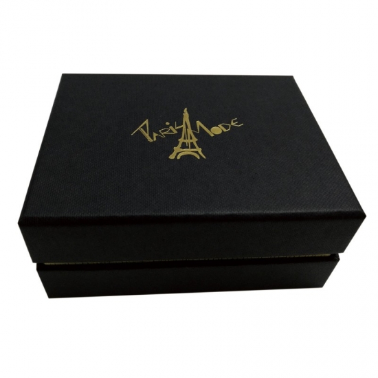 To jest jeden zestaw luksusowego czarnego dużego sztywnego pudełka z małym pudełkiem do pakowania prezentów, pokrywką i pudełkiem podstawowym, każde pudełko wykonane jest ze specjalnego czarnego papieru i szarego kartonu o gramaturze 1200g, a logo znajduje się na górnej pokrywie pokryto złotą folią.