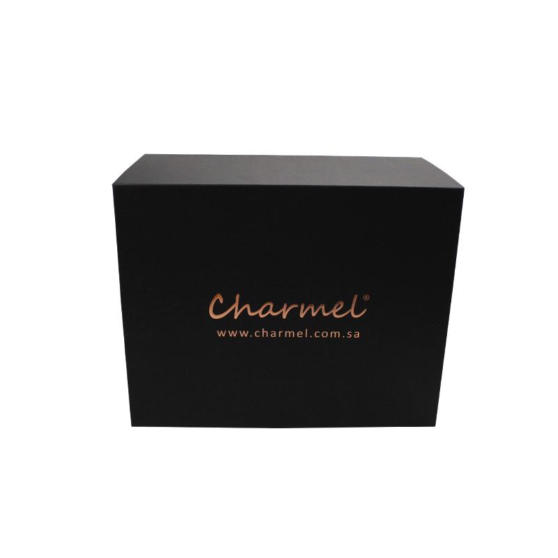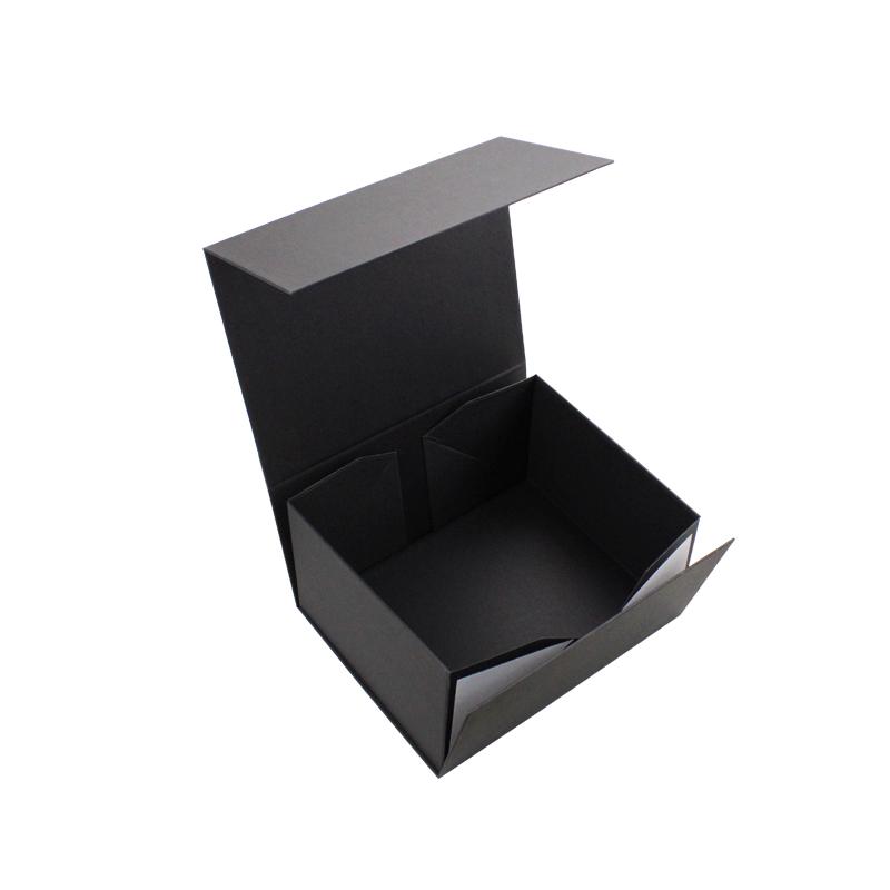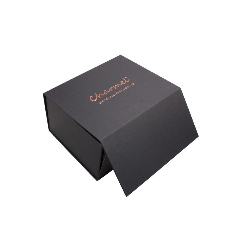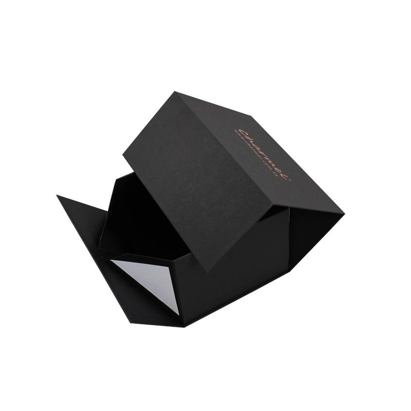 To jest czarny składanie pudełek prezentowych Z logo tłoczonym na gorąco. Dodaj dwustronną taśmę klejącą w czterech rogach, aby wzmocnić pudełko.
