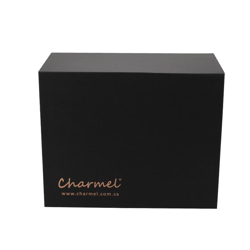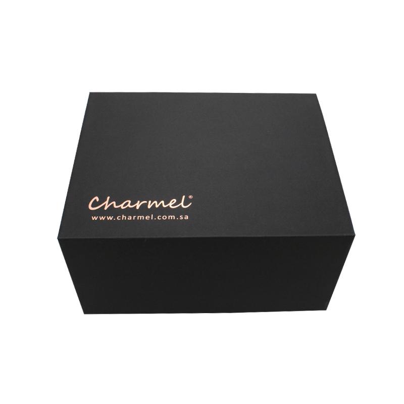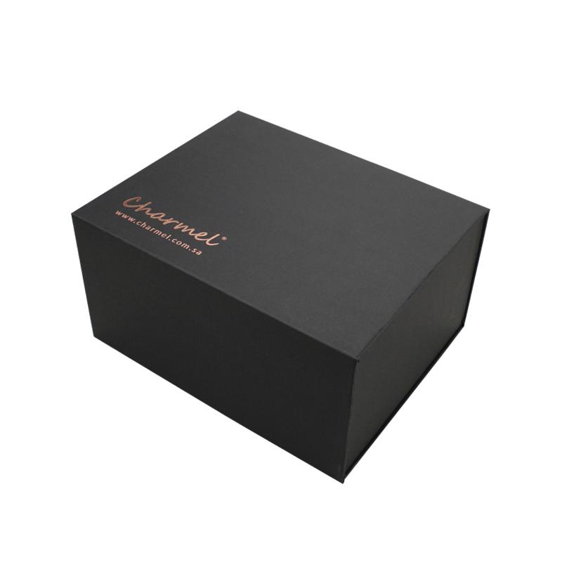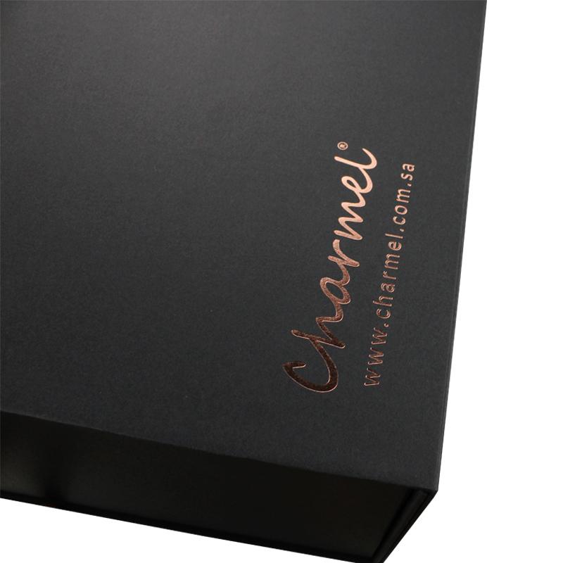 Czarny high-end składane pudełka do pakowania , do pakowania prezentów promocyjnych na kawę, pudełko prezentowe z logo w kolorze różowego złota.