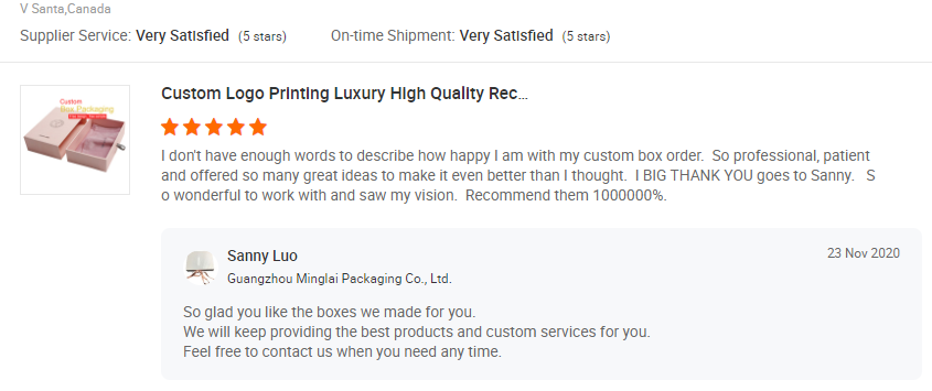 Następnie Jonathan przedstawił mi swoją szefową, Virginię. Rozmawialiśmy miło i potwierdziliśmy wszystkie szczegóły dotyczące pudełka z szufladami do sprzedaży i satynowymi woreczkami. W ciągu tygodnia ukończyliśmy próbkę, wysłałem więc filmy i zdjęcia do Virginii, aby potwierdzić próbkę.