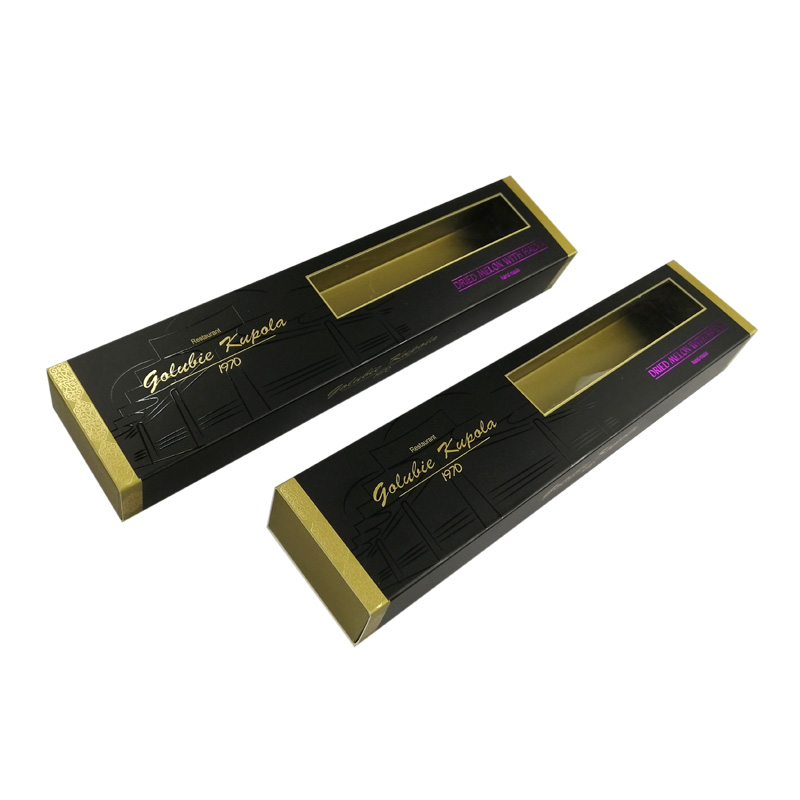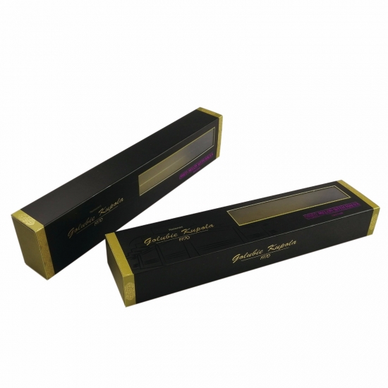 To jest składana, wysuwana szuflada ze złotą podstawą który zrobił z papieru artystycznego C2S 157g + szarej tektury 1200g ,pudełko jest w pełni zadrukowane na zewnątrz i wewnątrz, posiada papierową, tekturową wkładkę, która dostosowuje swój kształt do produktów znajdujących się w pudełku.