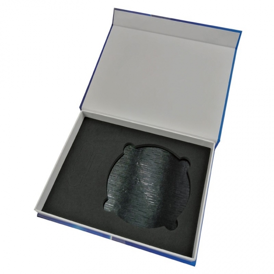 2) Materiał: laminowany papier artystyczny C2S o gramaturze 157 g/m2, szary karton o gramaturze 1200 g/m2, pianka EVA