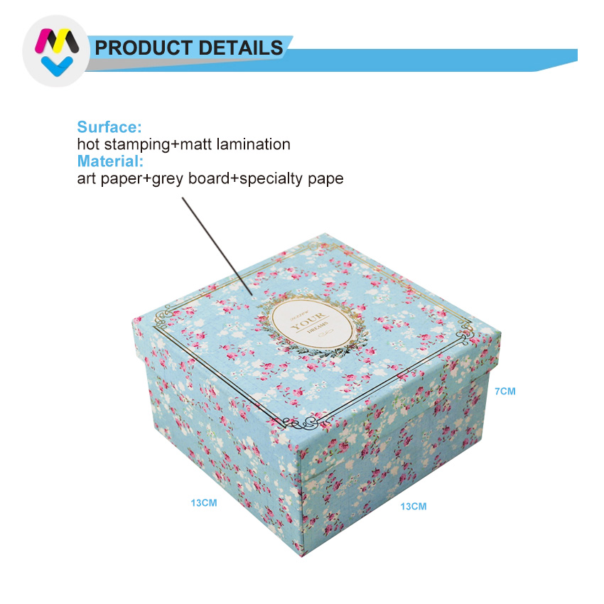 Normally 15-20 days after design/sampleNiestandardowe niebieskie pudełko prezentowe z romantycznym wzorem kwiatowym i pokrywką