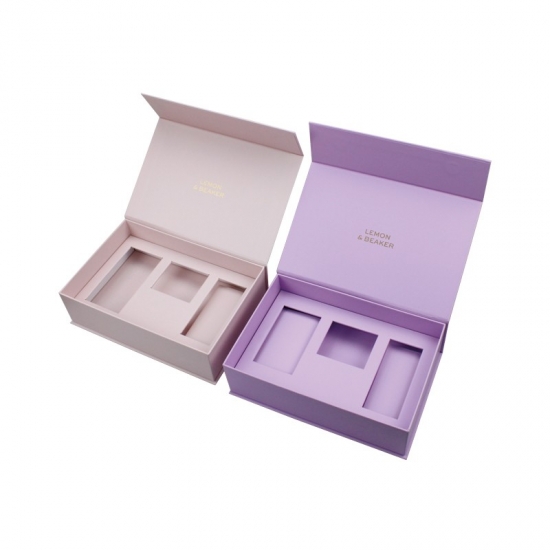 To różowe pudełko prezentowe w kształcie muszli z wkładką z tektury, wykonane z papieru artystycznego C2S o gramaturze 157 g i szarego kartonu o gramaturze 1200 g, z matowym wykończeniem i LOGO tłoczenie złotą folią, Rozmiar i kształt wkładki można dostosować do życzeń klienta.
