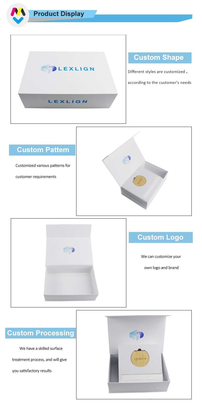 Uwaga: Wszystkie zdjęcia produktów, które zamieściliśmy w naszej witrynie, służą jedynie jako odniesienie do tego, jaki rodzaj opakowań możemy wykonać, nie oznacza to, że sprzedajemy to samo, co w magazynie. Skupiamy się na niestandardowych opakowaniach papierowych o dowolnym rozmiarze, kolorze, strukturze itd.