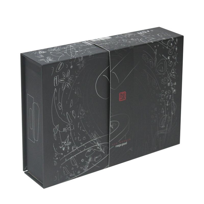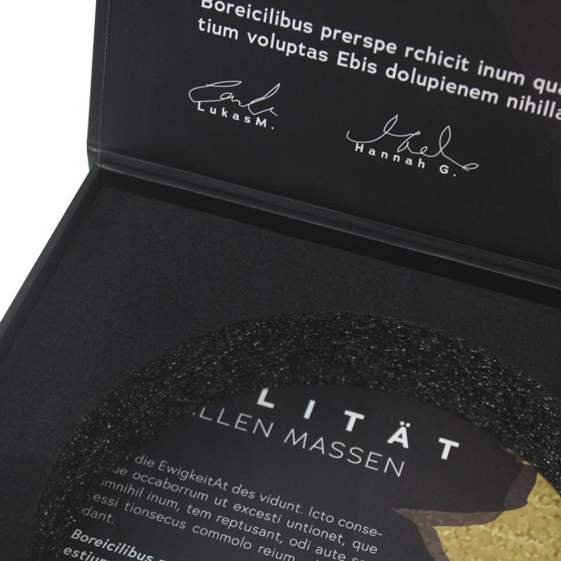 materiał pudełka: Papier artystyczny 157 g/m2, tektura podwójnie szara 1200 g + silne magnesy