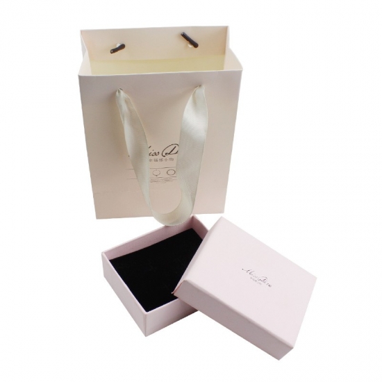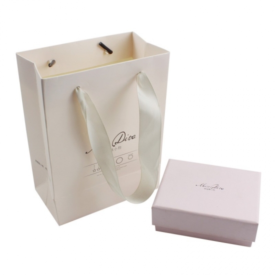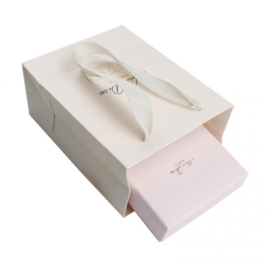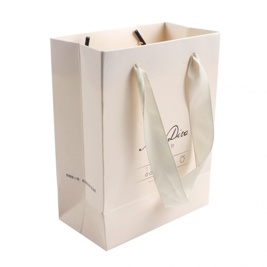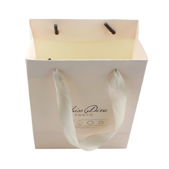 Te małe torebki prezentowe zadrukowane są w kolorze CMYK na papierze kredowym C1S o gramaturze 250 g/m2, z matowym wykończeniem i wstążką z plastikową końcówką. Popularny styl pakowania prezentów promocyjnych, takich jak biżuteria, kosmetyki, buciki dziecięce itp.