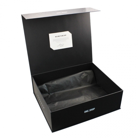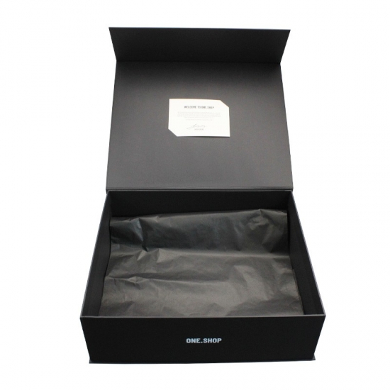 Czarne, bardzo duże, magnetyczne pudełka prezentowe. Prosty, całostronicowy nadruk sprawia, że całe pudełko nie jest już monotonne, ekonomiczne i przyjazne dla środowiska, odpowiednie do różnych pudełek prezentowych i produktów promocyjnych.