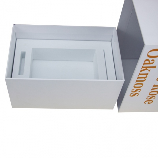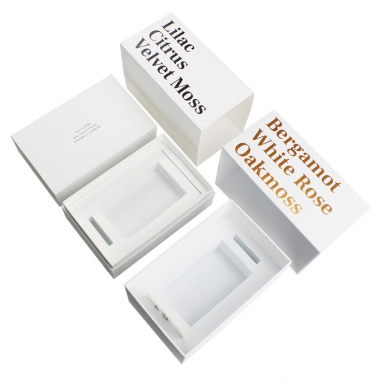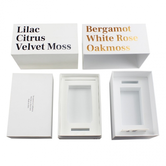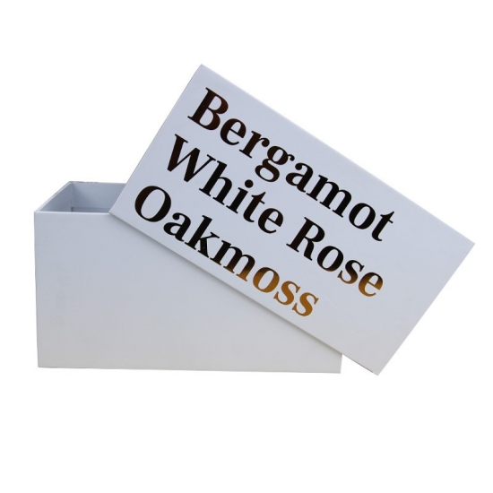 To pudełko na świecę z logo w kolorze złotym, wykonane z tektury falistej C2S o gramaturze 157 g i szarej tektury 1200 g. Wewnątrz znajduje się ochronna pianka EVA, która zostanie dostosowana do wielkości produktu.