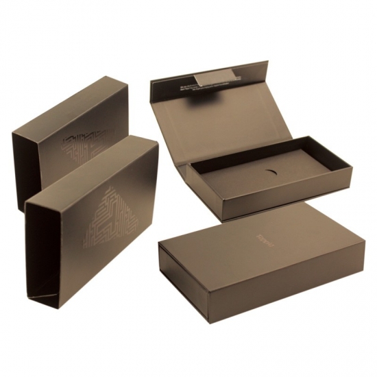 Małe czarne pudełko prezentowe z niestandardowym logo i magnetycznym zamknięciem