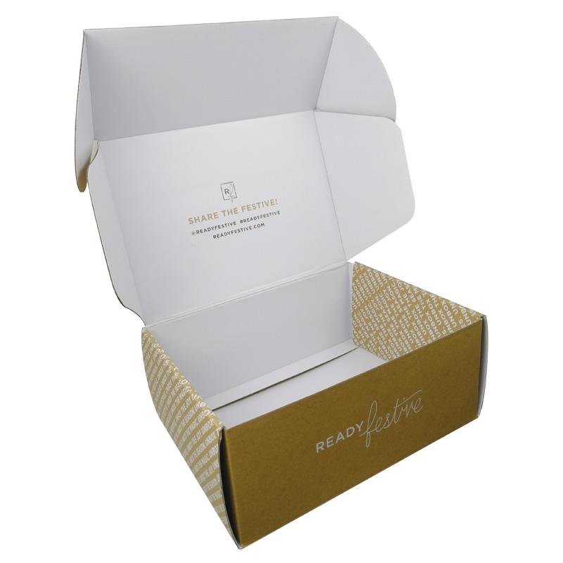 Hurtowe, luksusowe, niestandardowe opakowania na prezenty z brązowego papieru z logo, kartony wysyłkowe, tektura falista, płaskie pudełko do wysyłki produktów z recyklingu.
