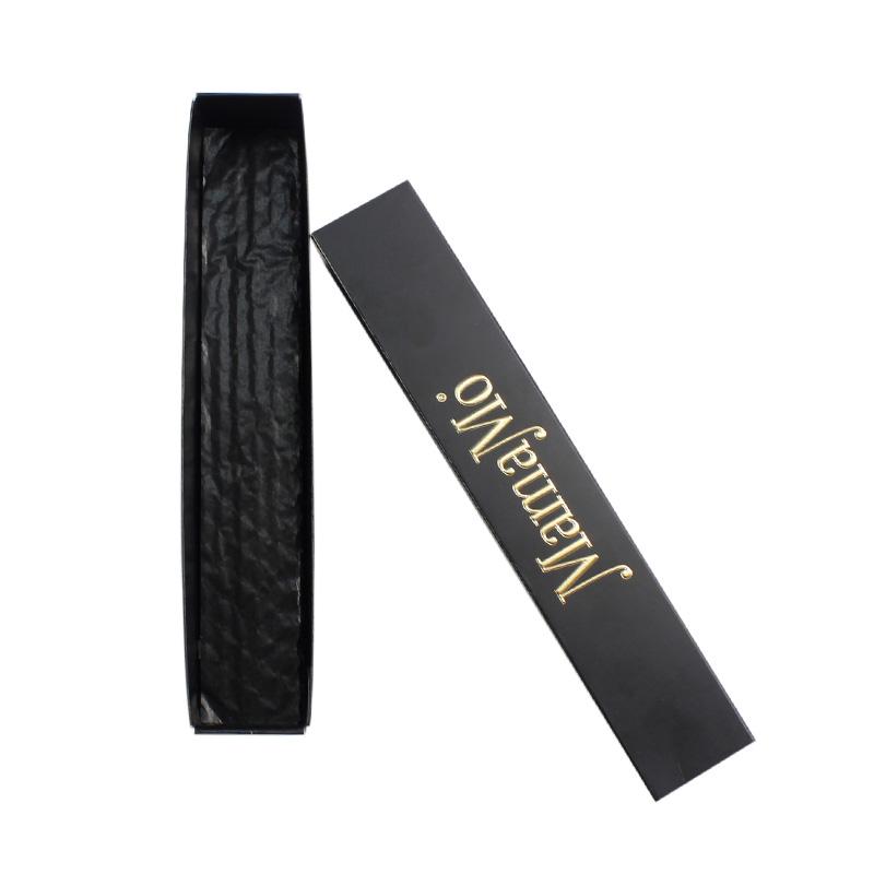 To jest ekonomiczna szuflada na czekoladę skrzynka który zrobił wykonane z papieru kredowego o gramaturze 350 g, zewnętrzna strona okładki w klasycznej czerni i logo na górze wykonane ze złotej folii, wytłoczone, co dodaje pudełku ekskluzywnego wyglądu, spód pudełka wykończony jest wstrząsoodpornym papierem falistym, aby chronić czekoladki w środku.