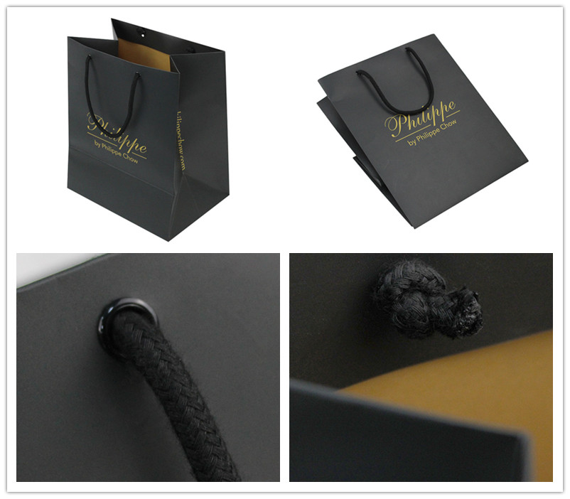 materiał torby: papier kredowy C1S 250 g/m2 + czarny, wiązany uchwyt ze sznurka + czarne oczko