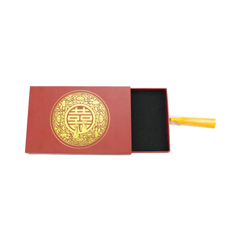 Hurtowe, wysokiej jakości, wysuwane pudełko w Chinach, z chińskimi elementami weselnymi. Szczególnie żółtą wstążkę można łatwo ozdobić i otworzyć