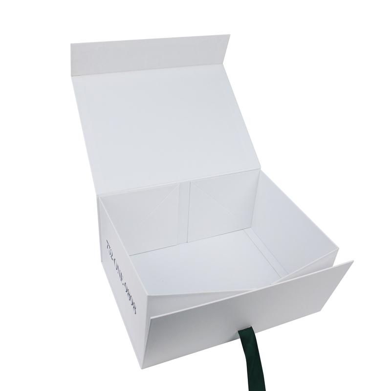 Premia Białe pudełka prezentowe ze wstążką z niestandardowym logo, rozmiarem, kolorem i wykończeniem, podwój wartość swoich produktów.