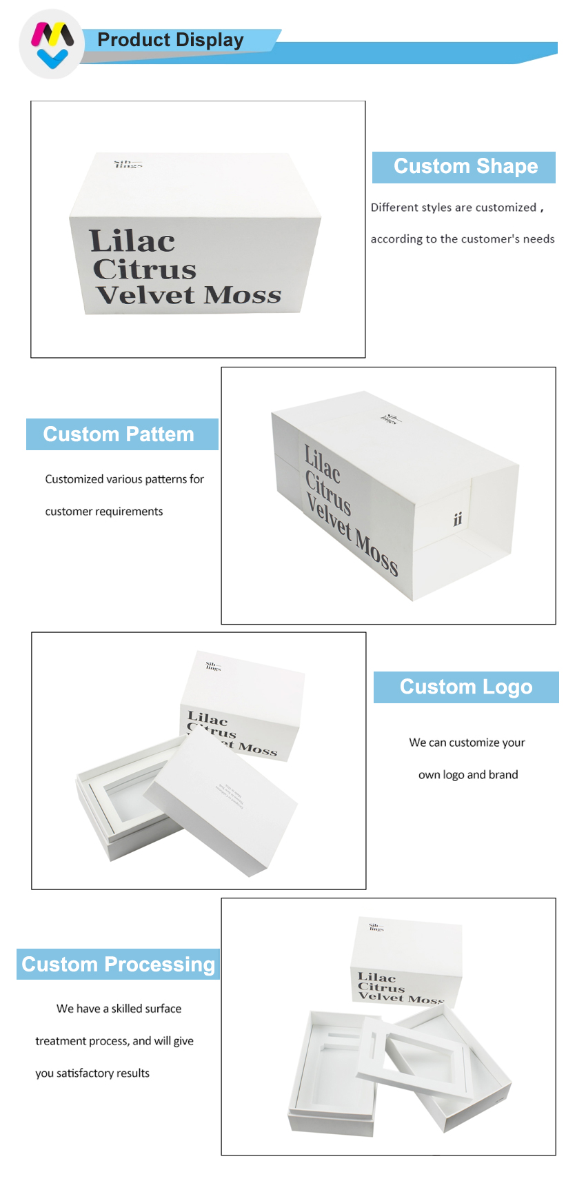 Uwaga: Wszystkie zdjęcia produktów, które zamieściliśmy w naszej witrynie, służą jedynie jako odniesienie do tego, jaki rodzaj opakowań możemy wykonać, nie oznacza to, że sprzedajemy to samo, co w magazynie. Skupiamy się na niestandardowych opakowaniach papierowych o dowolnym rozmiarze, kolorze, strukturze itd.