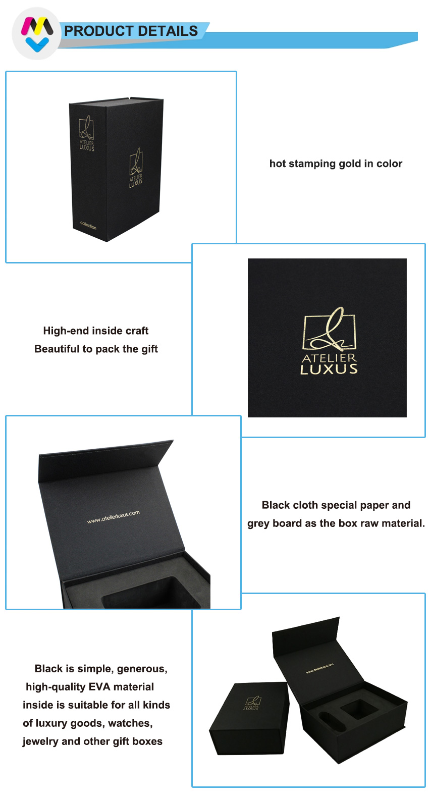 To pudełko prezentowe wykonane z czarnego pudełko prezentowe z klapką magnetyczną ekologiczny papier tekturowy z wysokiej jakości pianką EVA chroniącą Twój produkt przed uszkodzeniem