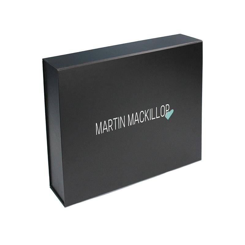 wykończenie pudełka: W pełni czarny nadruk jako tło oraz niestandardowe logo i tekst nadrukowane na górnej i wewnętrznej pokrywie. Lakierowanie punktowe UV w określonym miejscu.