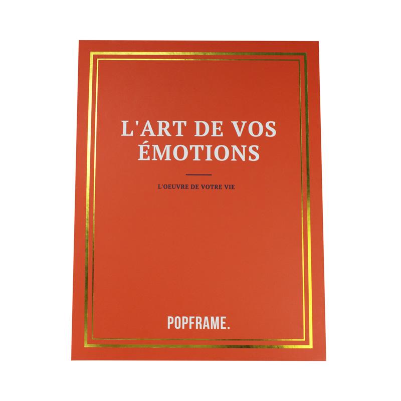 wykończenie pudełka: białe LOGO i tekst wytłoczone na czerwonym tle na zewnątrz, wewnątrz gładka biała ramka ze złotą folią na krawędzi.