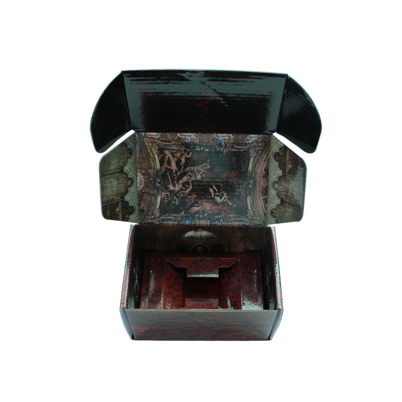 To jest niestandardowe pudełka pocztowe z nadrukiem , Wykonany z tektury CCNB o gramaturze 300 g, owinięty w mocną tekturę falistą, a wewnątrz o gramaturze 300 g/m2, z wyciętą wkładką z tektury. Jest popularny wśród opakowania produktów e-commerce i wysyłki. Zarówno zewnętrzna, jak i wewnętrzna strona zadrukowane są w pełnym kolorze CMYK. Błyszczące wykończenie sprawia, że pudełka wyróżniają się na tle innych materiałów opakowaniowych.