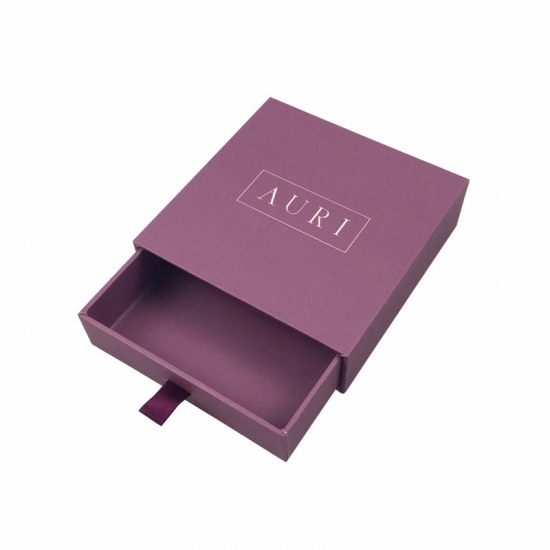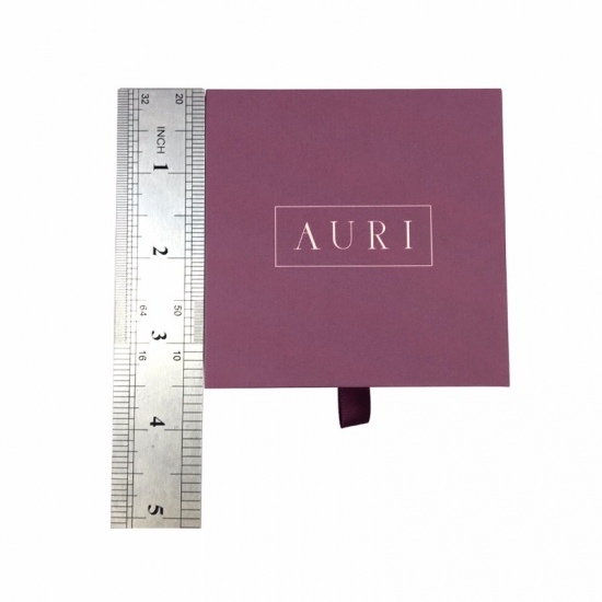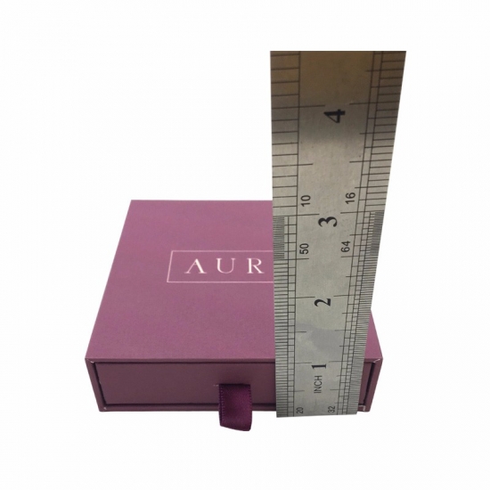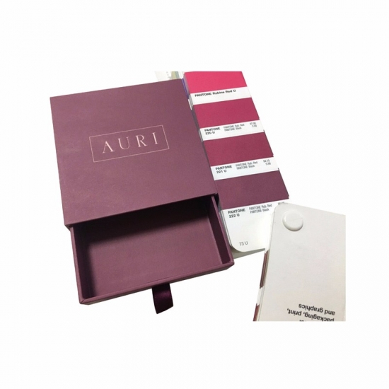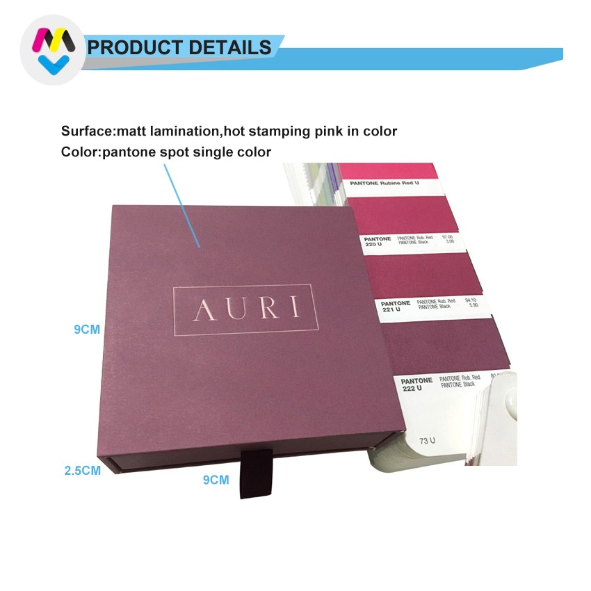 Spersonalizuj swoje własne, niepowtarzalne pudełka na biżuterię z tektury w kolorze Pantone, laminowane matowo, z gorącym tłoczeniem w kolorze różowym i fioletowym, użyj koloru Pantone.