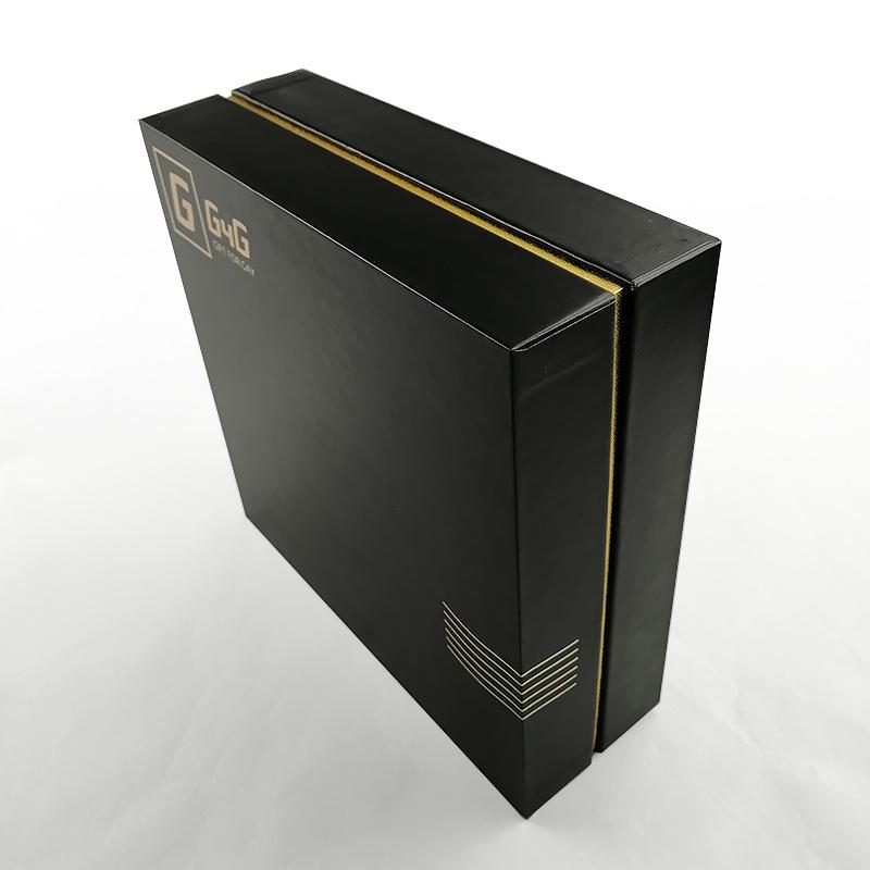 Pudełko na specjalistyczny papier z nadrukowanym złotym logo, pokrywką i podstawą