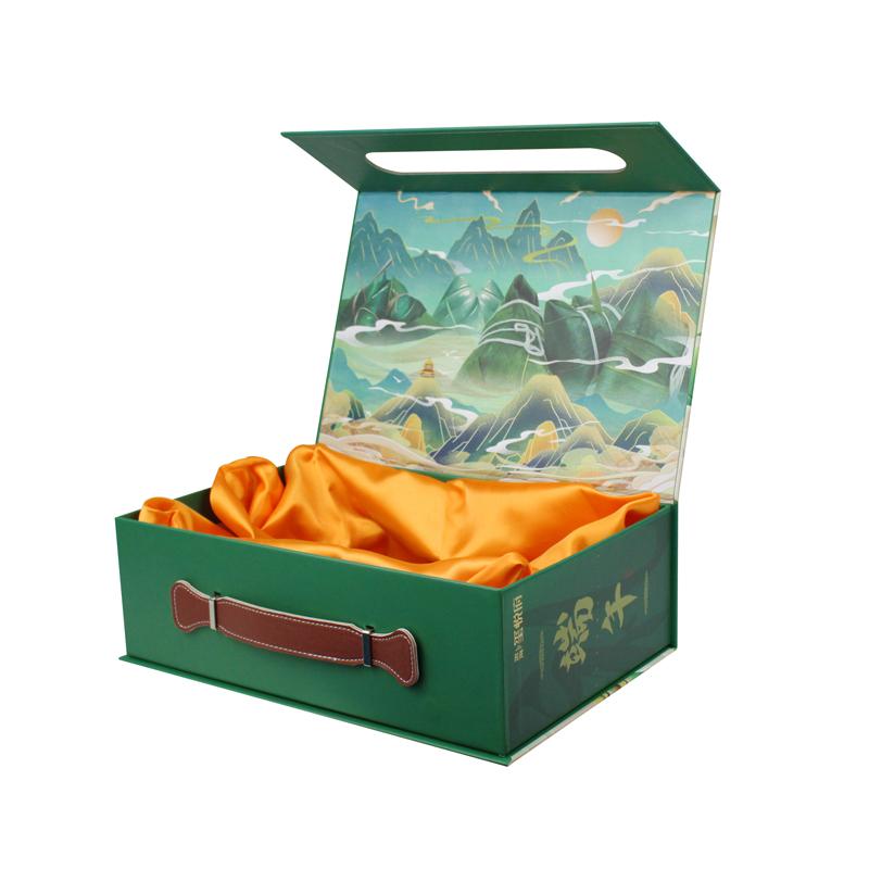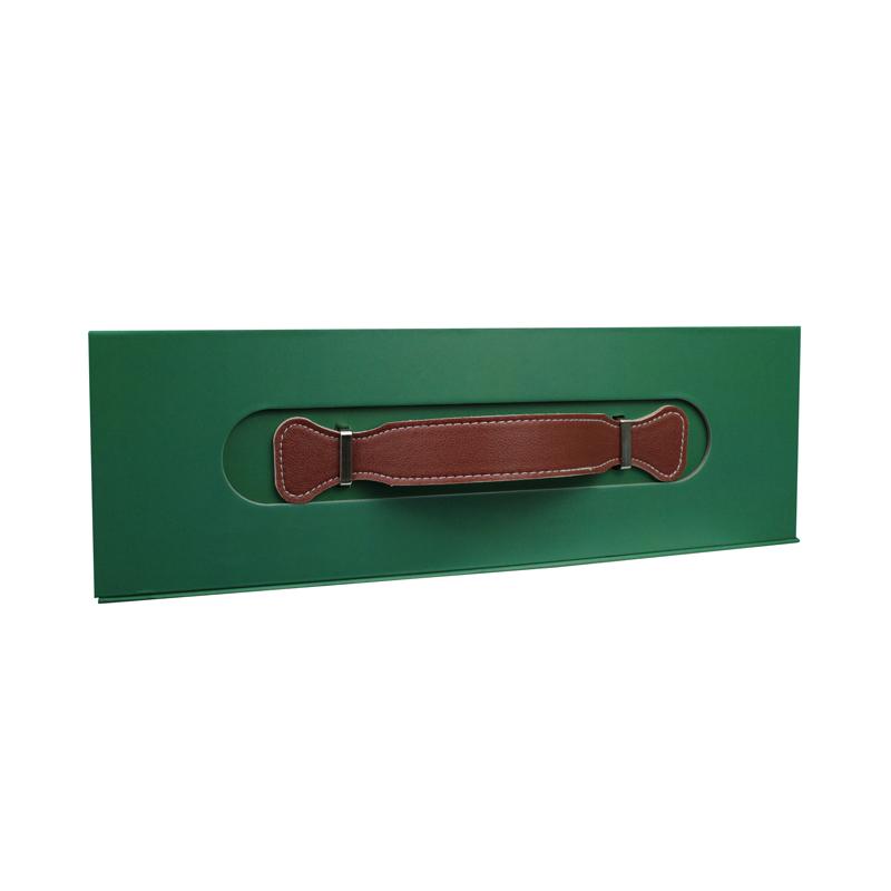 Starannie zaprojektowane pudełko papierowe z uchwytem, wykonane z papieru artystycznego CMYK o gramaturze 157 g/m2, zadrukowanego w pełnym kolorze, na sztywnej tekturze o grubości 2 mm. Skórzany uchwyt i miękkie, satynowe wnętrze sprawią, że Twój świąteczny prezent będzie prezentem dla klienta lub znajomego.