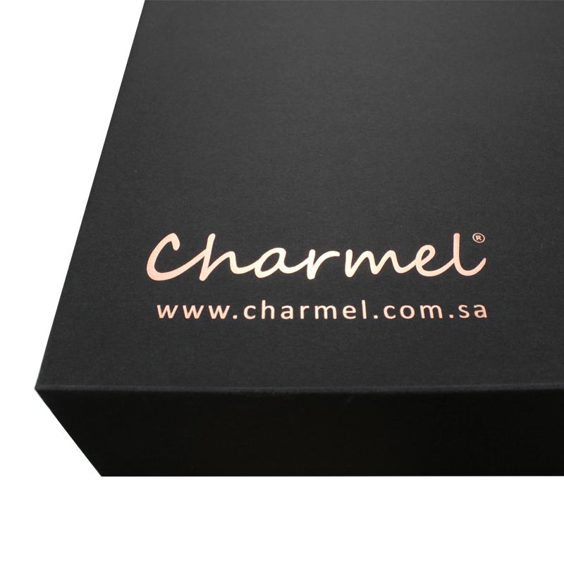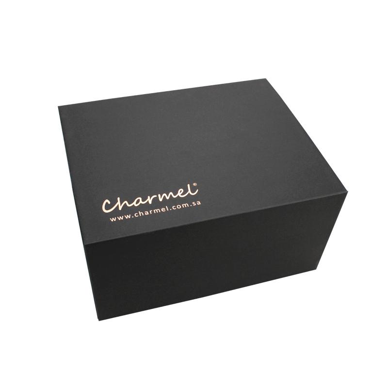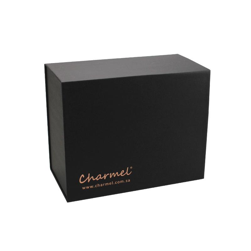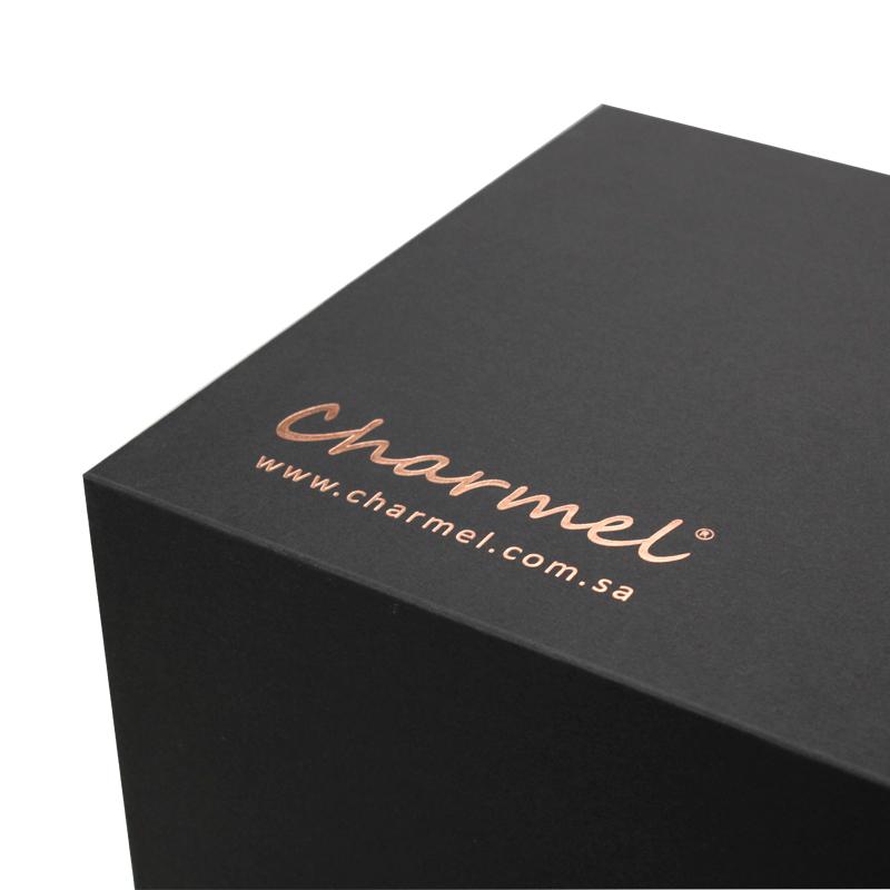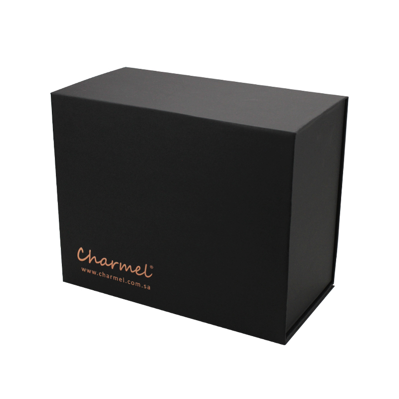 To jest czarny łatwe składanie B woły który zrobił ze specjalnego czarnego papieru i szarego kartonu o gramaturze 1200 g, logo na rogu górnej pokrywy wykonane jest metodą tłoczenia różowo-złotą folią. Możemy dostosować rozmiar i logo zgodnie z Państwa życzeniem.