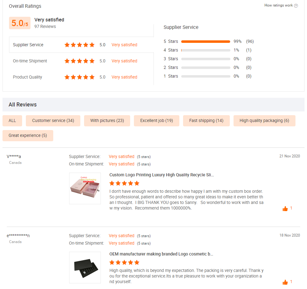 Podczas każdego procesu ściśle kontrolujemy ewentualne problemy. Przed zapakowaniem, nasi profesjonalni kontrolerzy jakości sprawdzają pudełka, aby upewnić się, że nie mają one żadnych wad. Wszystkie pudełka, które do tej pory wyprodukowaliśmy, otrzymały wiele pozytywnych recenzji od klientów.