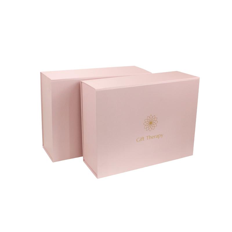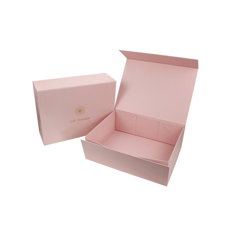 Składane duże różowe pudełka kosmetyczne ze złotym logo