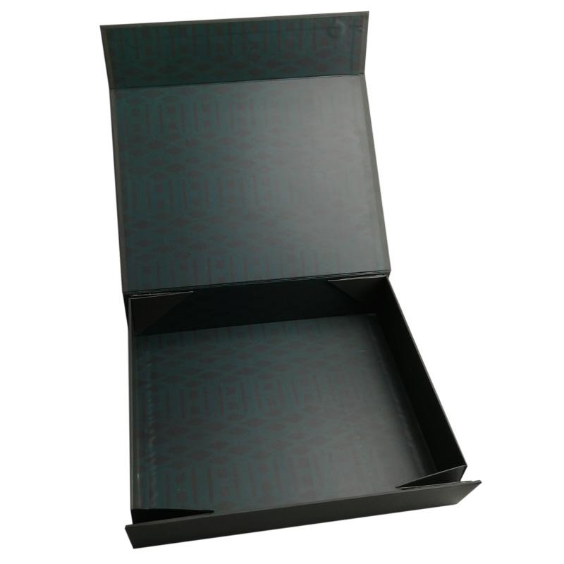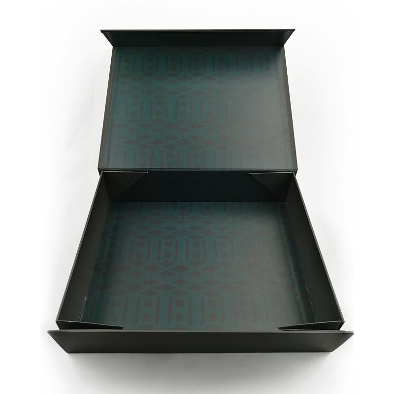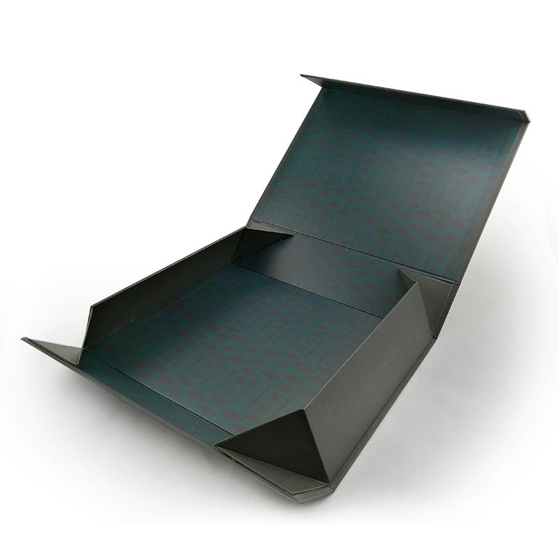 To jest zielony kolor czarne składane pudełka prezentowe który zrobił na papierze kredowym C2S o gramaturze 157 g + szarym kartonie o gramaturze 1200 g, pełnokolorowy czarny nadruk na zewnątrz i wewnątrz pudełka z powłoką UV na logo.