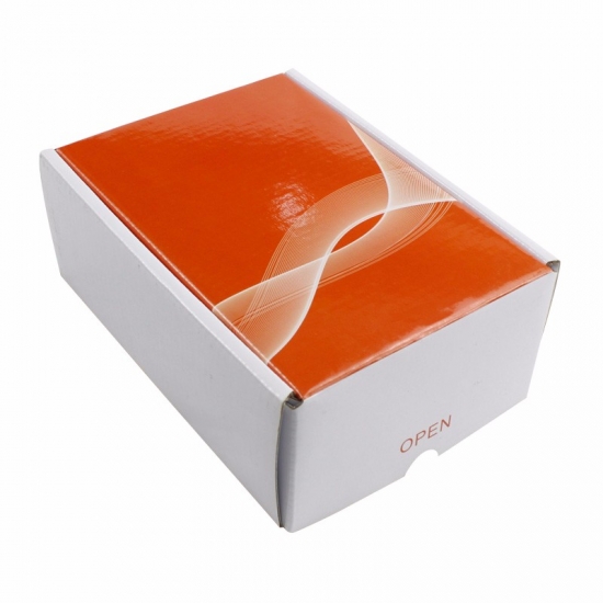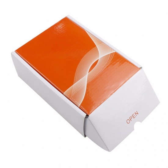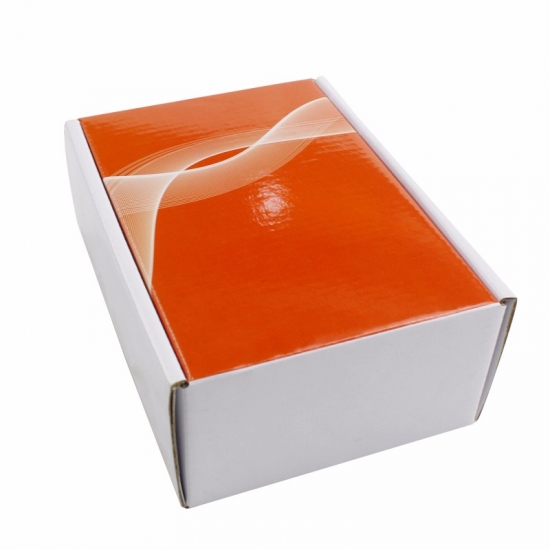 To jest błyszczące, faliste pudełka prezentowe wykonane z falistej tektury CCNB+WE o gramaturze 300g, są to pudełka prezentowe z tektury falistej przeznaczone do sprzedaży hurtowej; zewnętrzna strona jest zadrukowana w pełnym kolorze z błyszczącym wykończeniem powierzchni, a wewnętrzna strona jest gładka w kolorze białym bez nadruku.