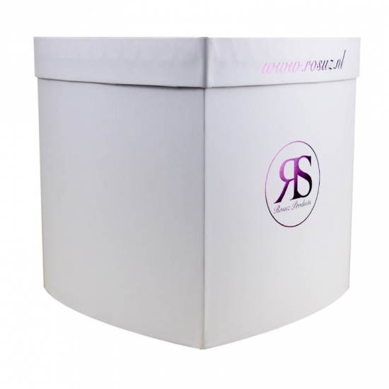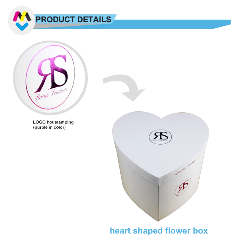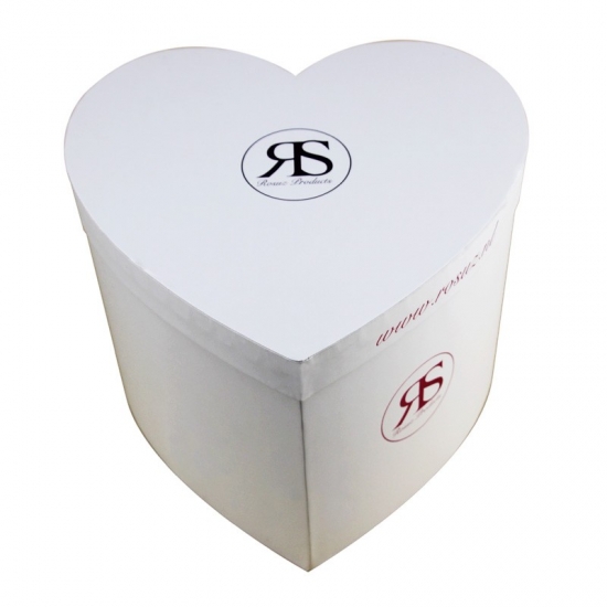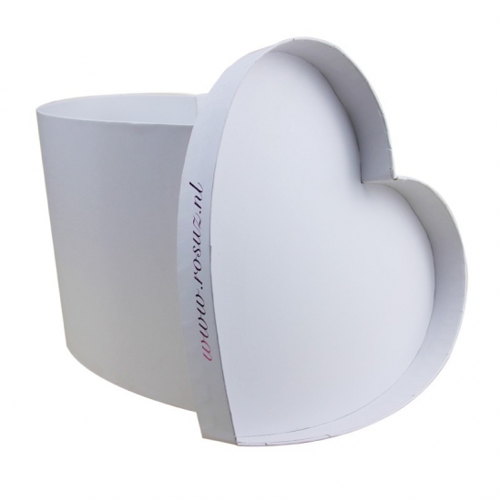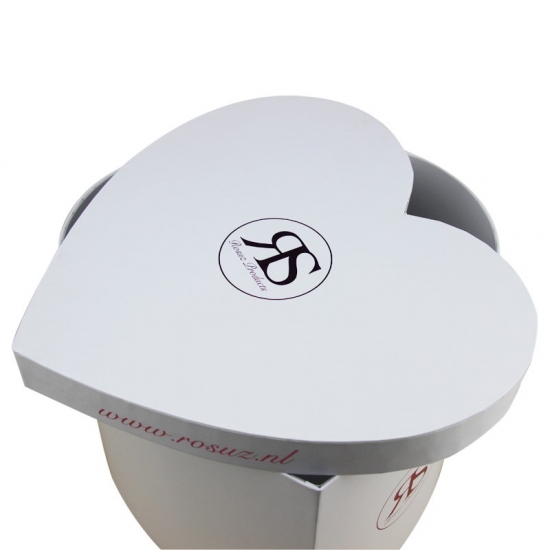 Wysokiej jakości pudełko w kształcie serca. Z pokrywką i nadrukiem w kolorze śnieżnobiałym. Bardzo dekoracyjne i eleganckie, idealne dla par i do pakowania kwiatów.