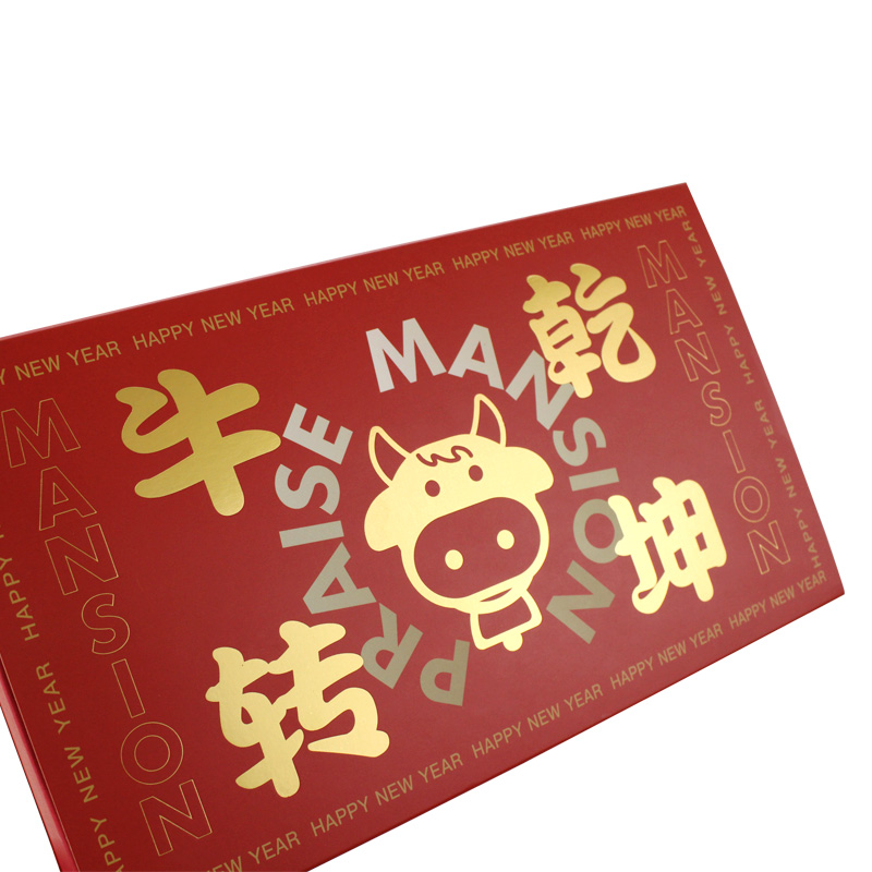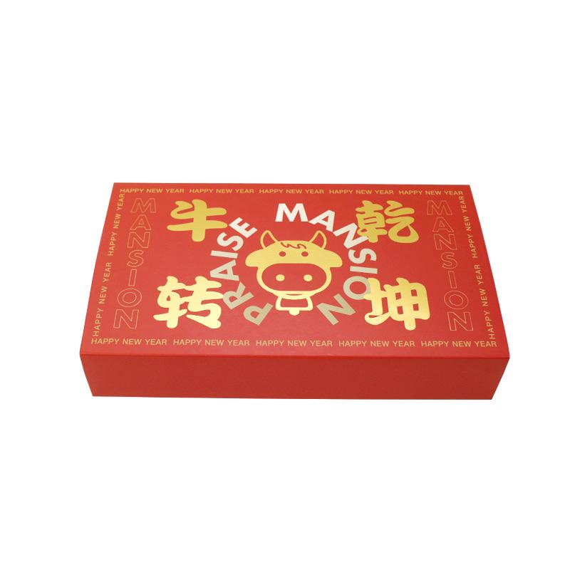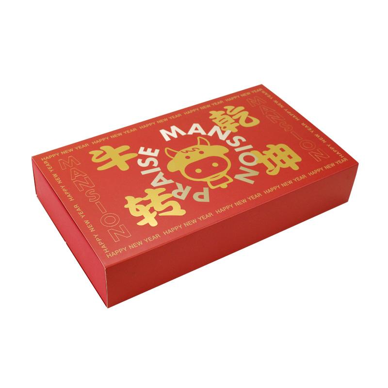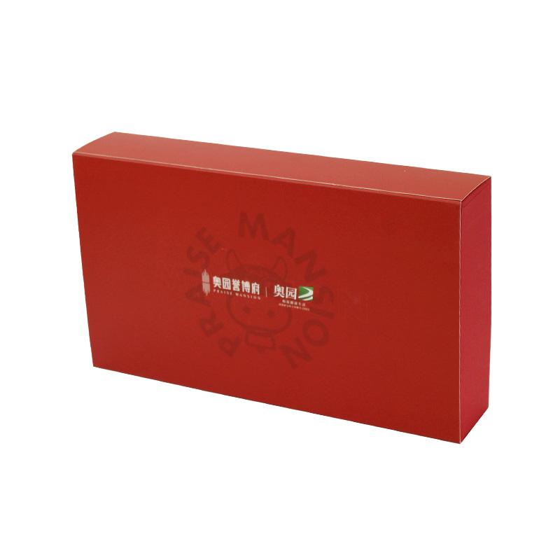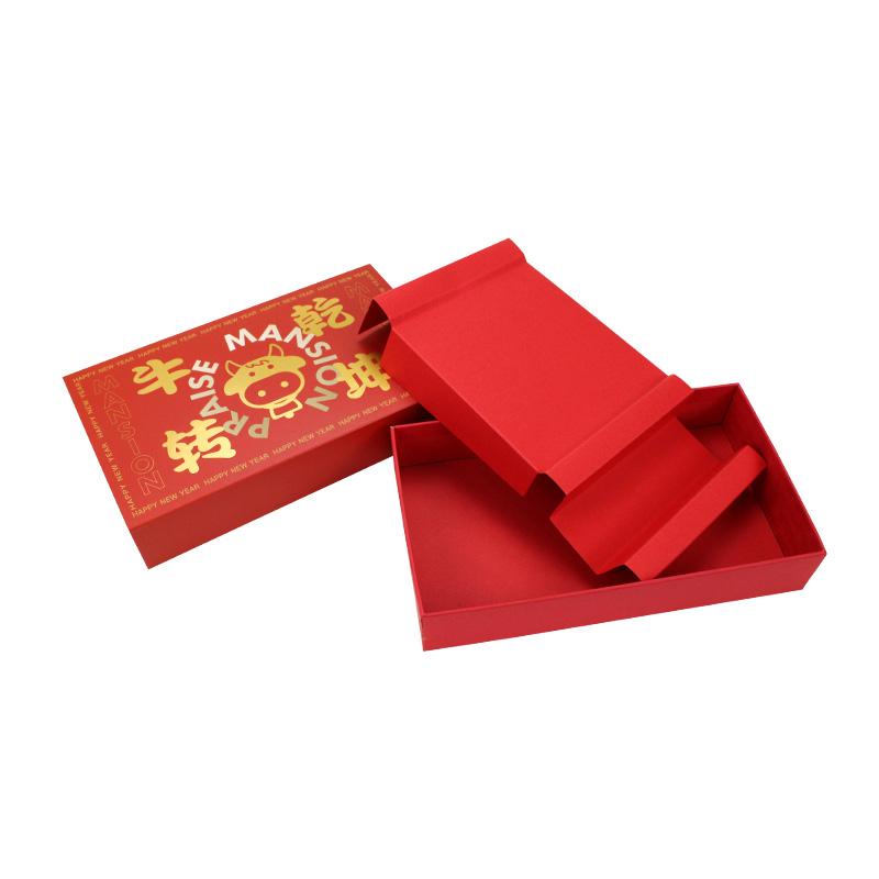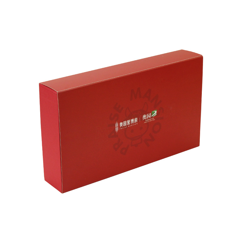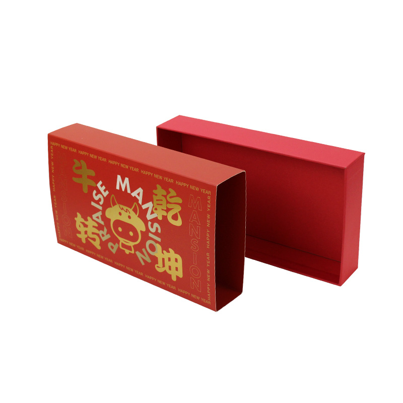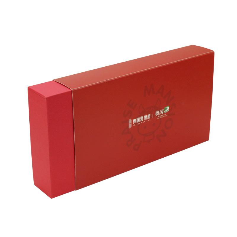 To jest składana szuflada który zrobił z papieru artystycznego powlekanego jednostronnie o gramaturze 350 g ,pełne nadruki w kolorze czerwonym na całym pudełku z logo i tekstem wytłoczonym złotą folią.