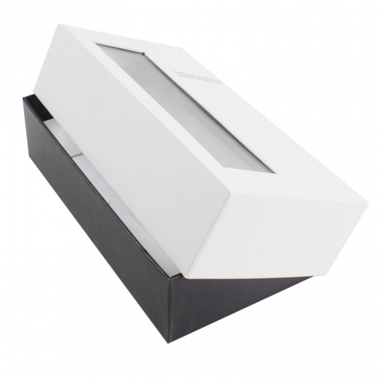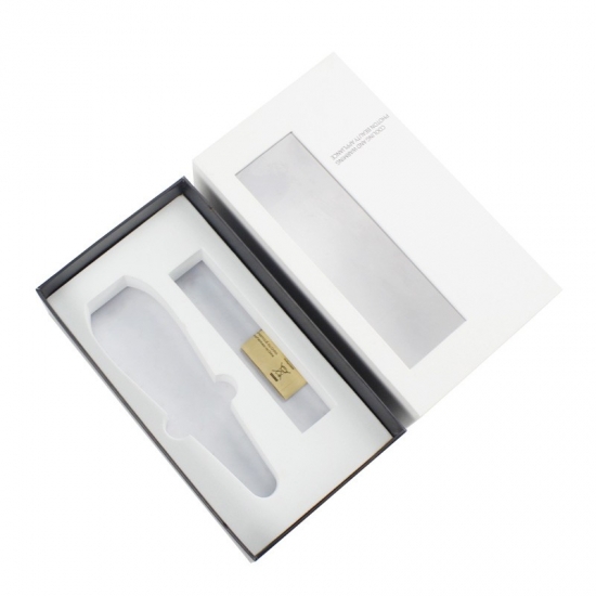 To jest kosmetyk w małym rozmiarze prostokąt pudełko z przezroczystymi pokrywkami który zrobił z papieru artystycznego C2S 157g + szarej tektury 1200g Wnętrze wypełnione pianką EVA jest ukształtowane odpowiednio do rozmiaru produktów, które będą w pudełku.