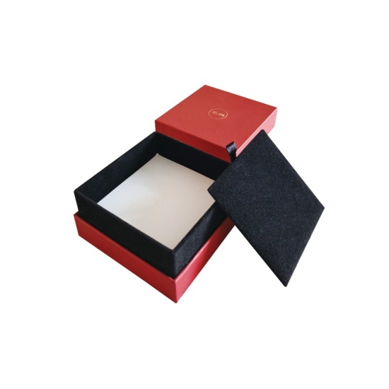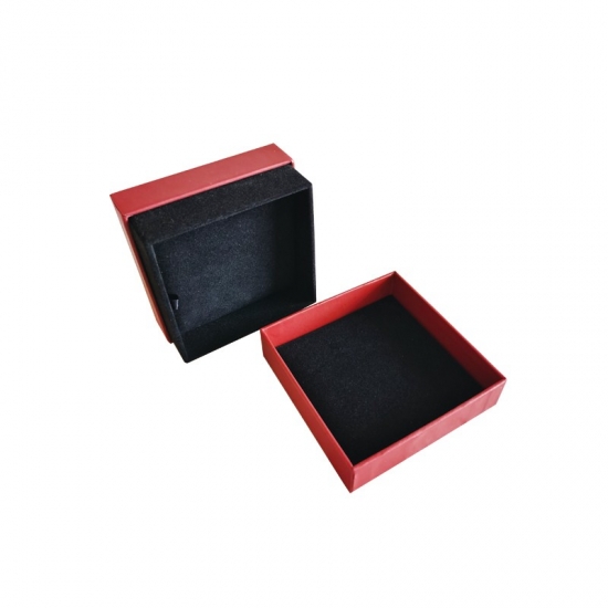 Niestandardowe kwadratowe pudełko prezentowe 10x10 z pokrywką który zrobił ze specjalnego papieru + szarego kartonu 1200g, mankiet dolnej okładki z tkaniny welurowej i wkładka z pianki z tkaniną welurową, co nadaje jej ekskluzywny wygląd.