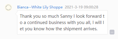Tydzień po wysłaniu próbek, Bianka Otrzymała próbki i była zadowolona z ich jakości i koloru, więc zamówiła od razu 2000 zestawów na próbę. Towar został już przygotowany i wysłany. Powiedziała, że w przyszłości przekaże wszystkie zamówienia do naszej fabryki, ponieważ poczuła się bardzo uspokojona.