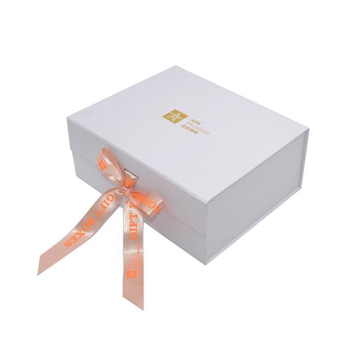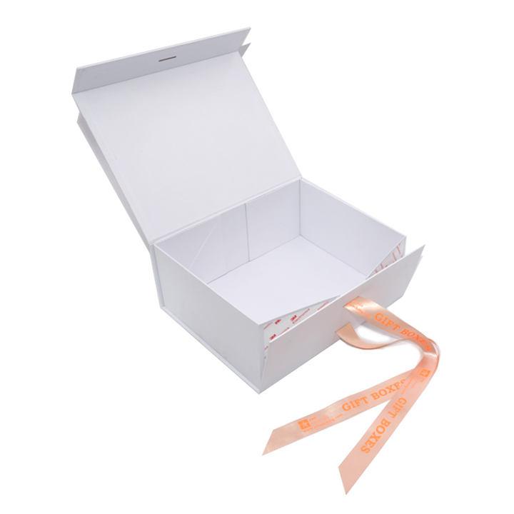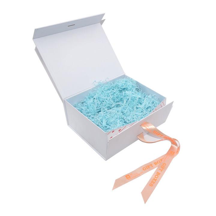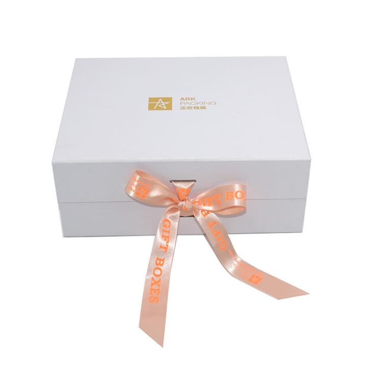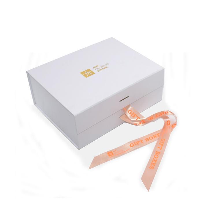 Normally 15-20 days after design/sampleBiałe składane pudełko prezentowe A4 z zamknięciem wstążkowym