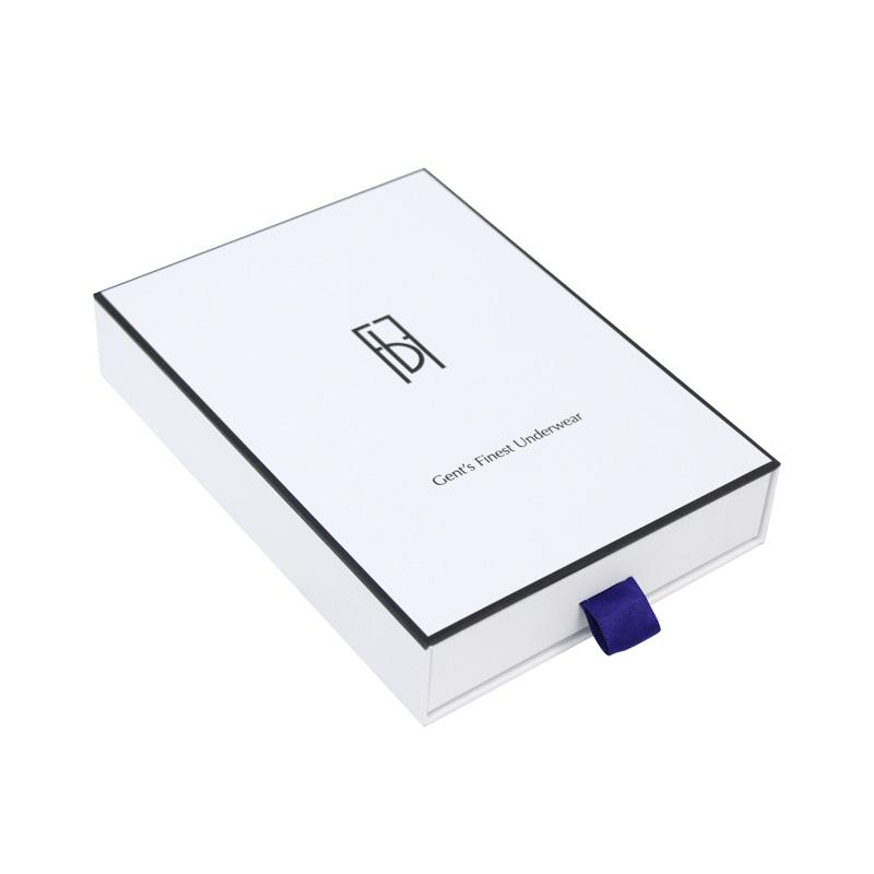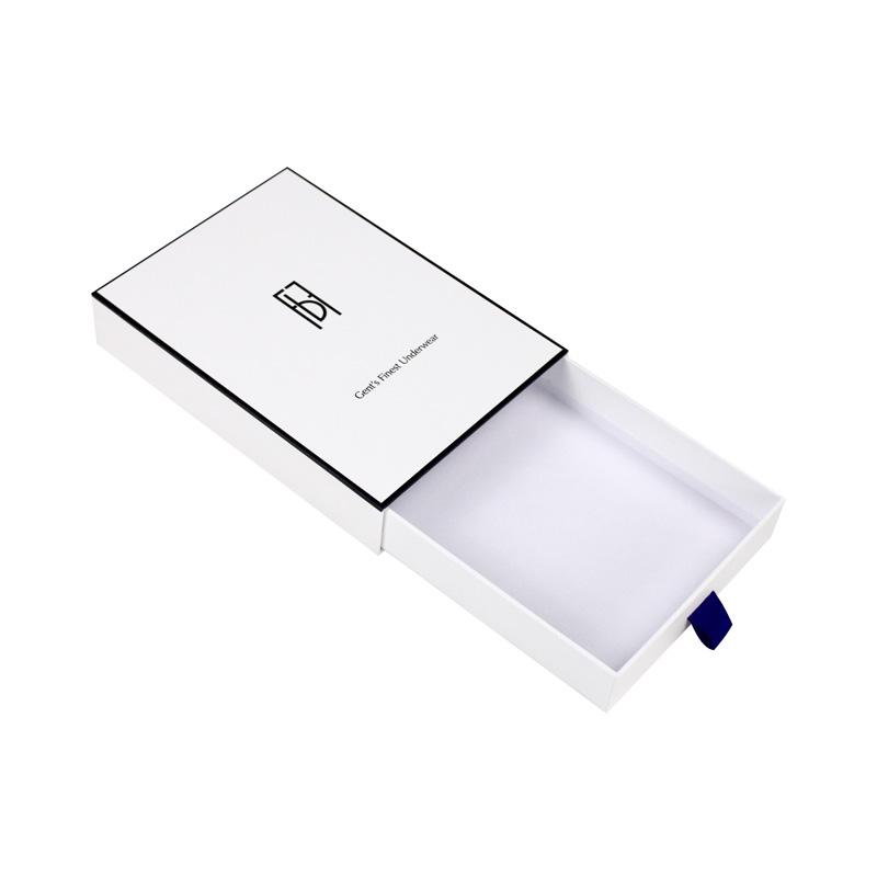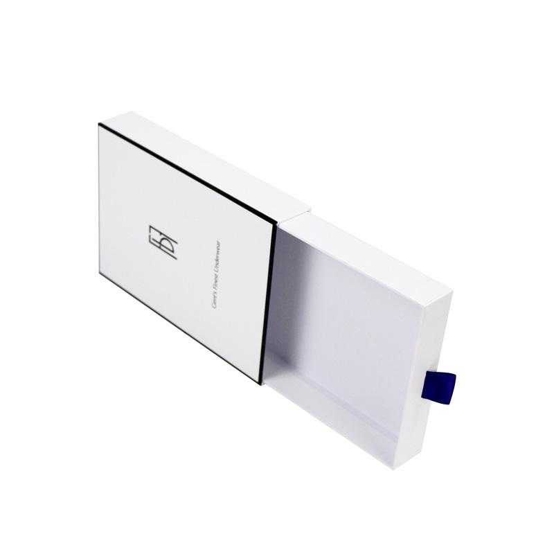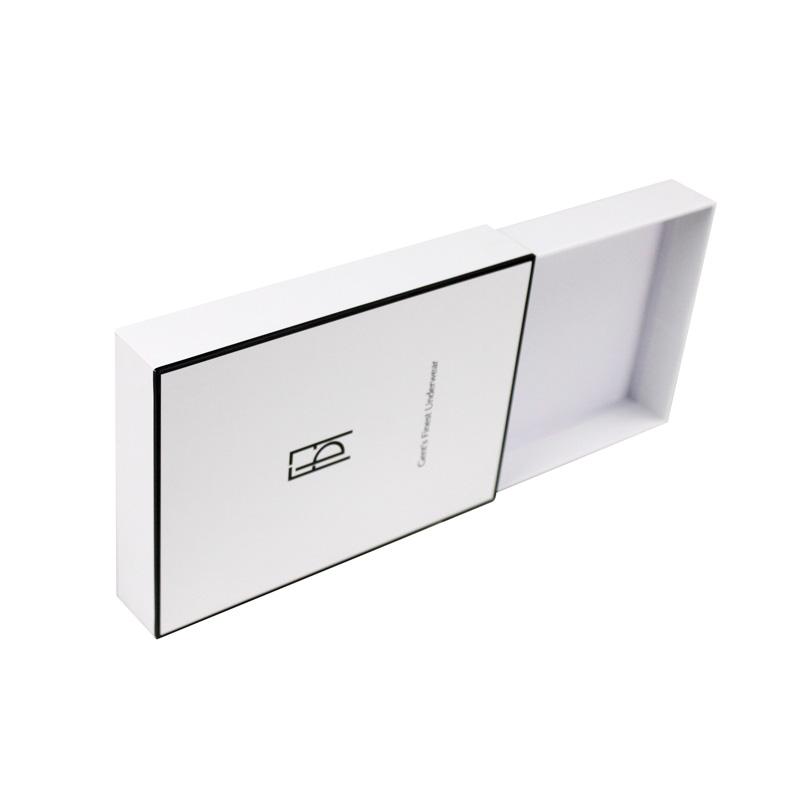 Pudełka tekturowe z szufladami, białe i czarne, z nadrukiem