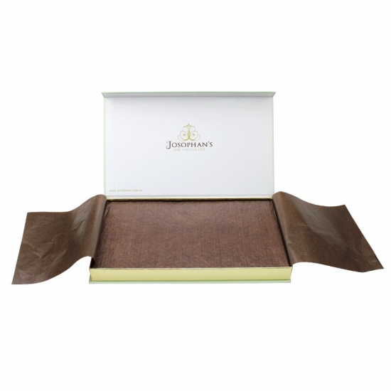 Zielone pudełka prezentowe z klapką i magnetycznym zatrzaskiem. Prosty, biały wygląd, akcesoria w środku w plastikowej tacce, papier do kopiowania, dyskretny luksus, ekonomiczne i piękne. Nadaje się do wszelkiego rodzaju opakowań czekoladowych.
