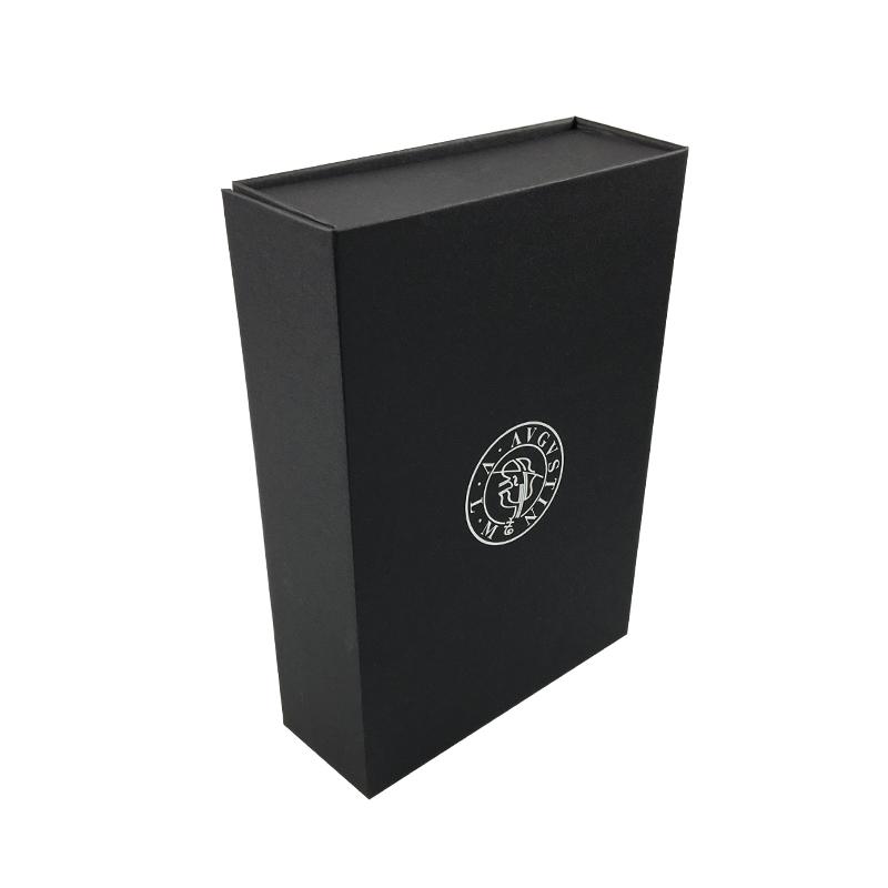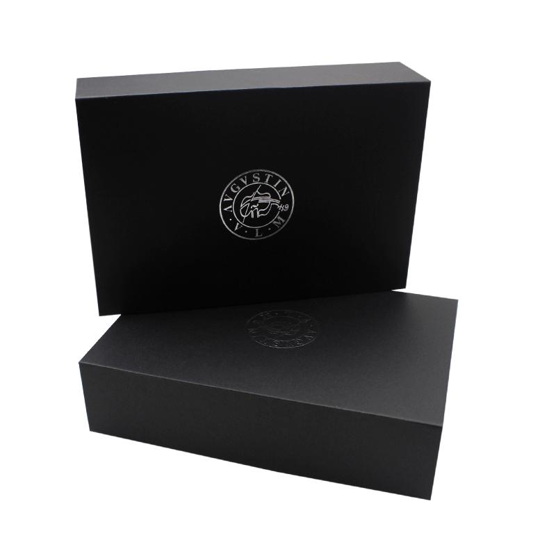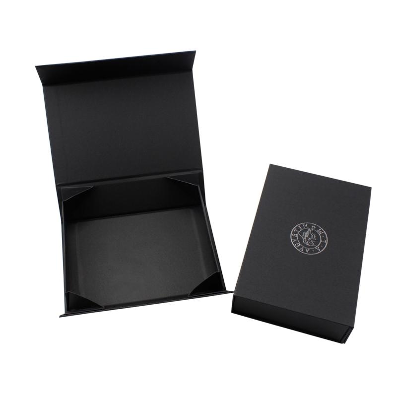 To jest czarny klasyczny luksusowy czarny hurtowa sprzedaż płaskich pudełek prezentowych Pudełko prezentowe składane z logo wytłoczonym na srebrnej folii, odpowiednie do pakowania produktów kosmetycznych